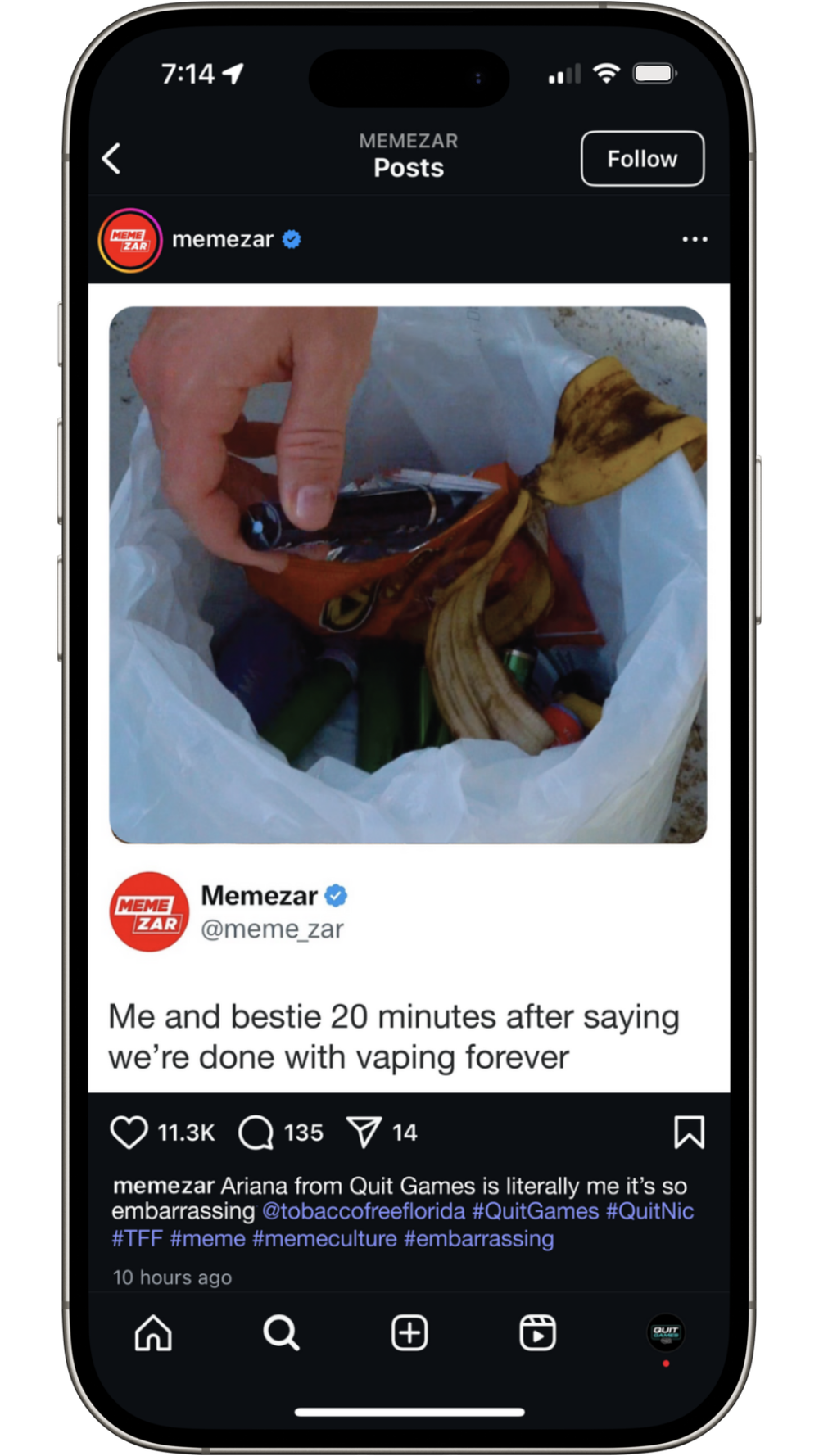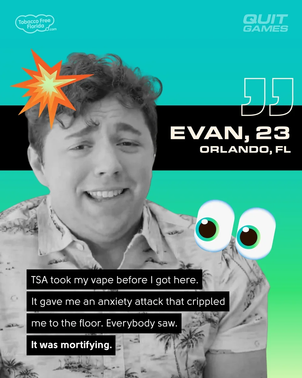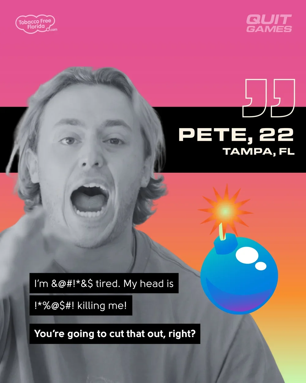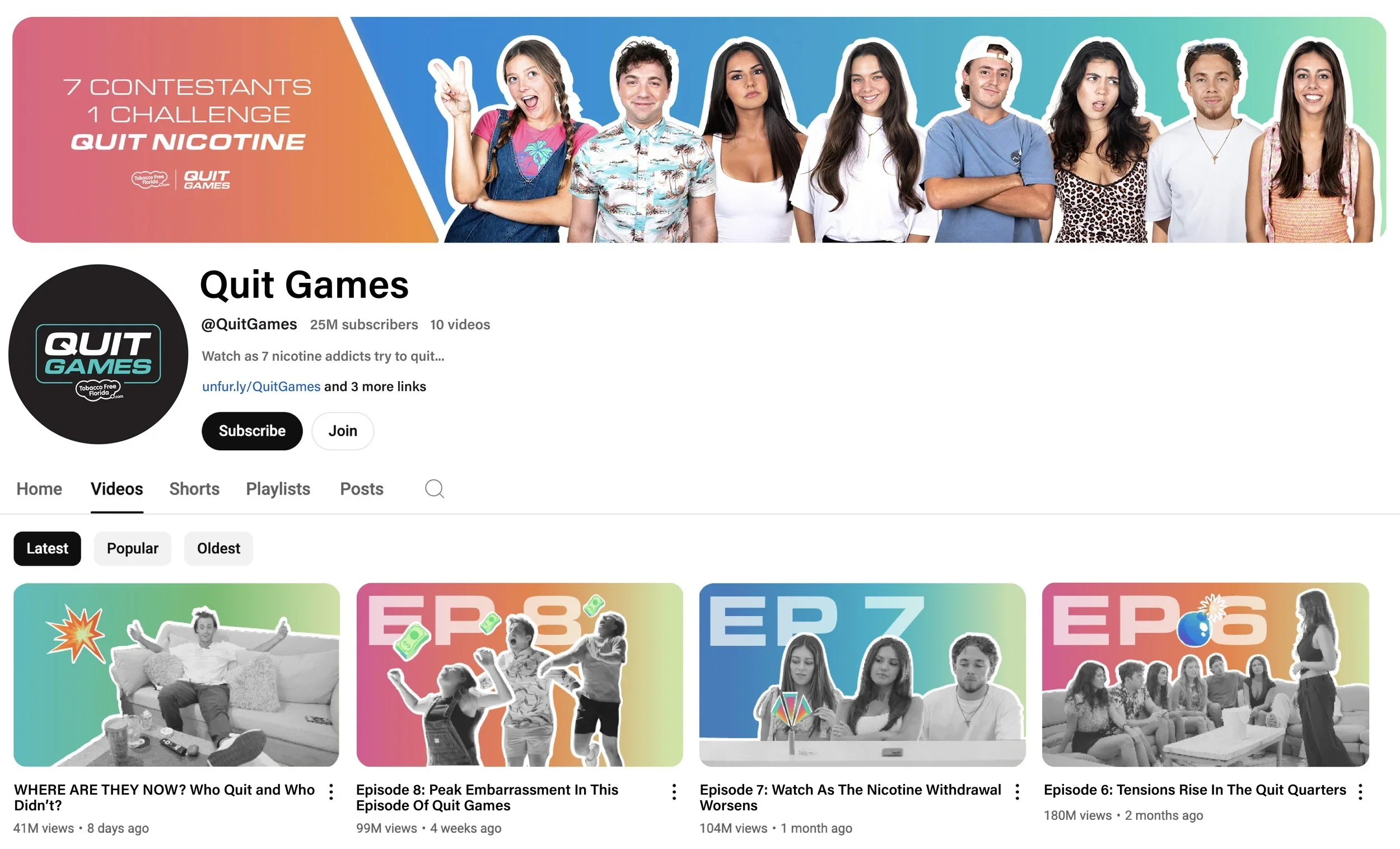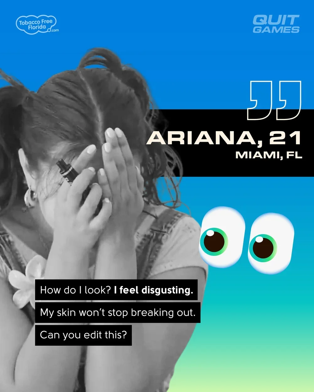 Idea Infiltrate teen culture with Quit Games, a dramatic social media content series disguised as a reality competition show that exposes the embarrassing realities of nicotine addiction.
